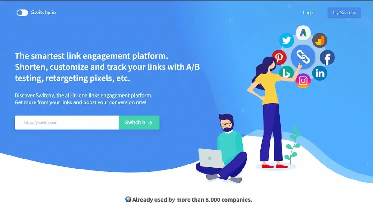 Se você quer transformar cada link em um ativo de performance, o Switchy entrega um pacote bem completo para quem vive de tráfego, afiliados, social e growth. A base é o encurtador com customização de preview: você edita título, descrição, imagem e domínio antes de compartilhar — perfeito para aumentar CTR e deixar tudo on-brand, fugindo dos links feios e sem rastreio. Dentro de cada URL, dá para injetar retargeting pixels (Facebook, Google Ads, Pinterest, etc.), ou seja, todo clique vira audiência para campanhas futuras. Pra quem roda criativos de topo e meio de funil, isso é ouro.